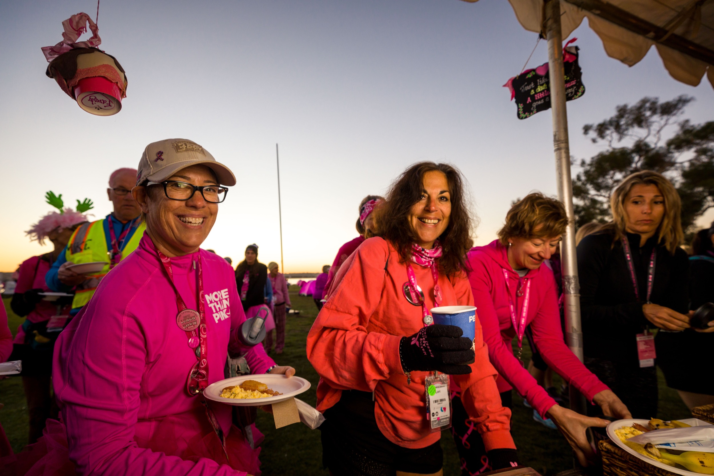 For the two nights you spend with us on the 3-Day, we like to think we take camping up a notch. Yes, you will be sleeping in our signature pink tents, but there is so much more to our glamping lifestyle than that! You will also experience the excitement of being surrounded by hundreds of your 3-Day friends, the fun of our activities to help you stay fresh and ready for the next day of walking, and of course, the deliciousness of our breakfast and dinner feasts.